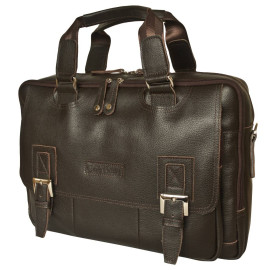 Кожаная сумка для ноутбука Carlo Gattini Vertelle (Вертелле) выполнена из натуральной кожи темно-коричневого цвета. Состоит из основного отделения на молнии, внутри которого есть отделение для ноутбука с диагональю до 14 дюймов, отделение для авторучек, отсеки для кредитных карт и карман на молнии. Спереди и сзади, рядом с основным отделением, объ..